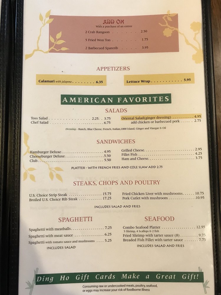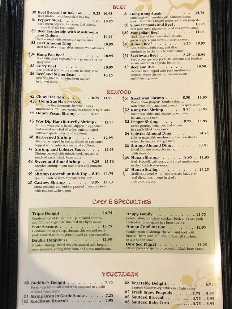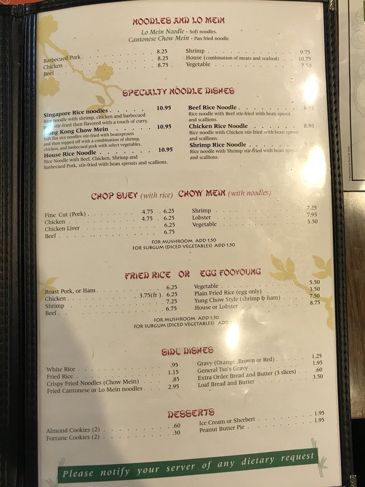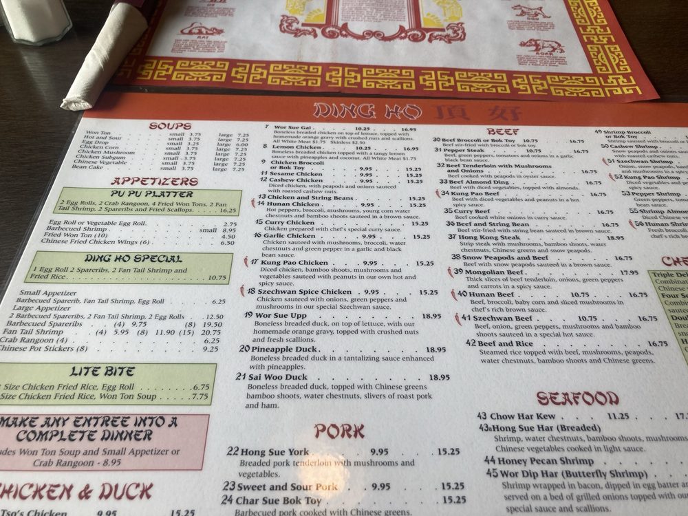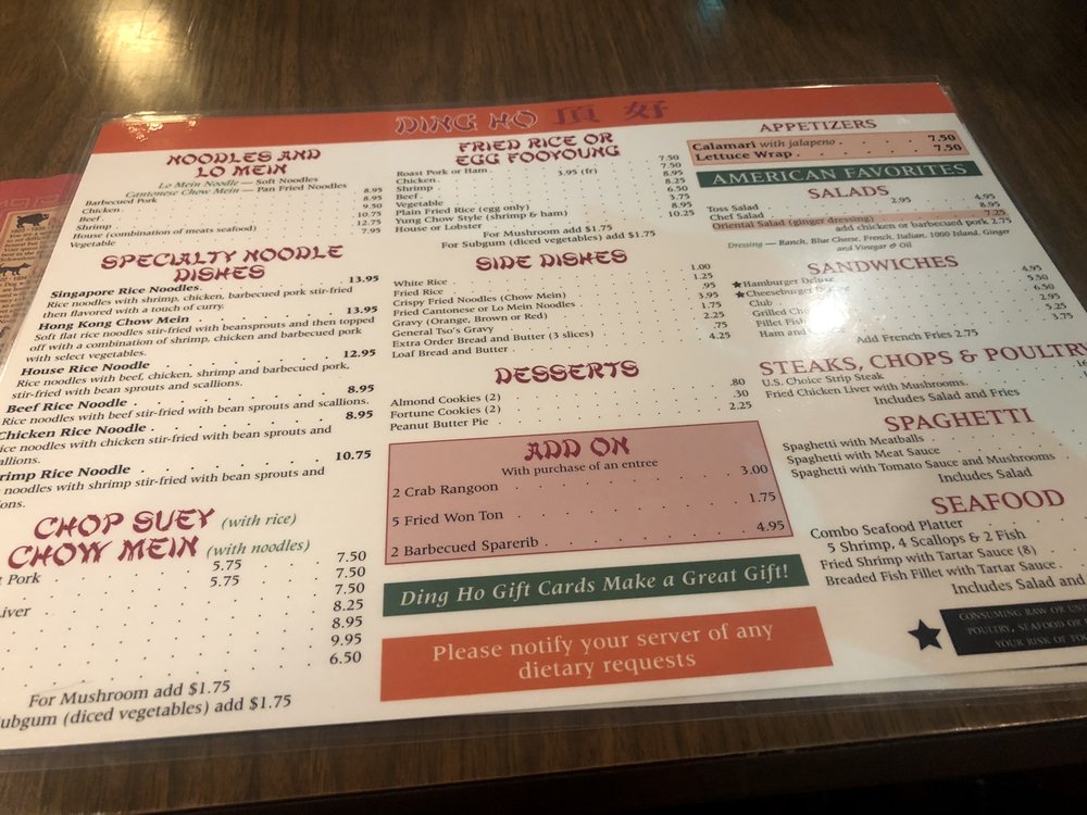 Ding Ho Restaurant in Columbus, OH is a classic Chinese eatery offering a wide range of dishes. With a variety of vegetarian options, cozy outdoor seating, and friendly staff, it's a perfect spot for a casual lunch or dinner. The reviews rave about the delicious food, especially the egg rolls, vegetable soup, and tofu with black bean sauce. The wait staff, like server Dana, are efficient and make dining a pleasant experience. The menu features Cantonese flavors and traditional Chinese dishes, keeping the old-school charm alive. The dining area is clean, comfortable, and welcoming, making it an ideal spot for gatherings with friends and family. Don't miss out on the flavorful won-ton soup and mai-tais while enjoying the reasonable prices and variety of choices at Ding Ho Restaurant.